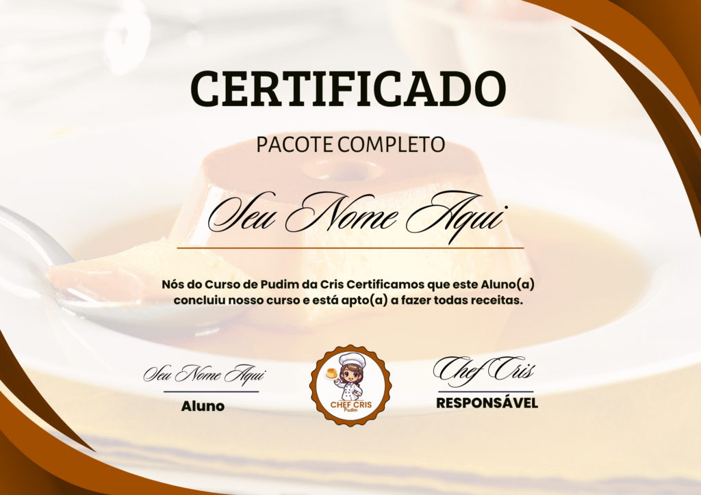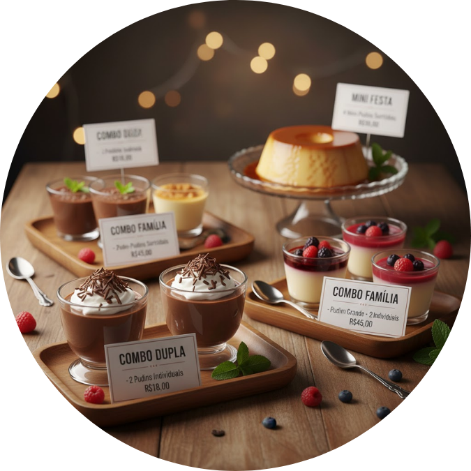Aqui você aprende tudo para dominar a produção dos pudins mais irresistíveis, cremosos e lucrativos do momento — com técnicas perfeitas, caldas incríveis, combinações gourmet e métodos que garantem sabor, consistência e padronização em cada receita.